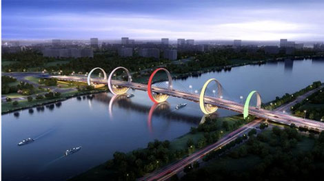 紅壁巖大橋設計理念——玉璧連環(huán)(全橋首座鋼圓環(huán)主塔斜拉橋)